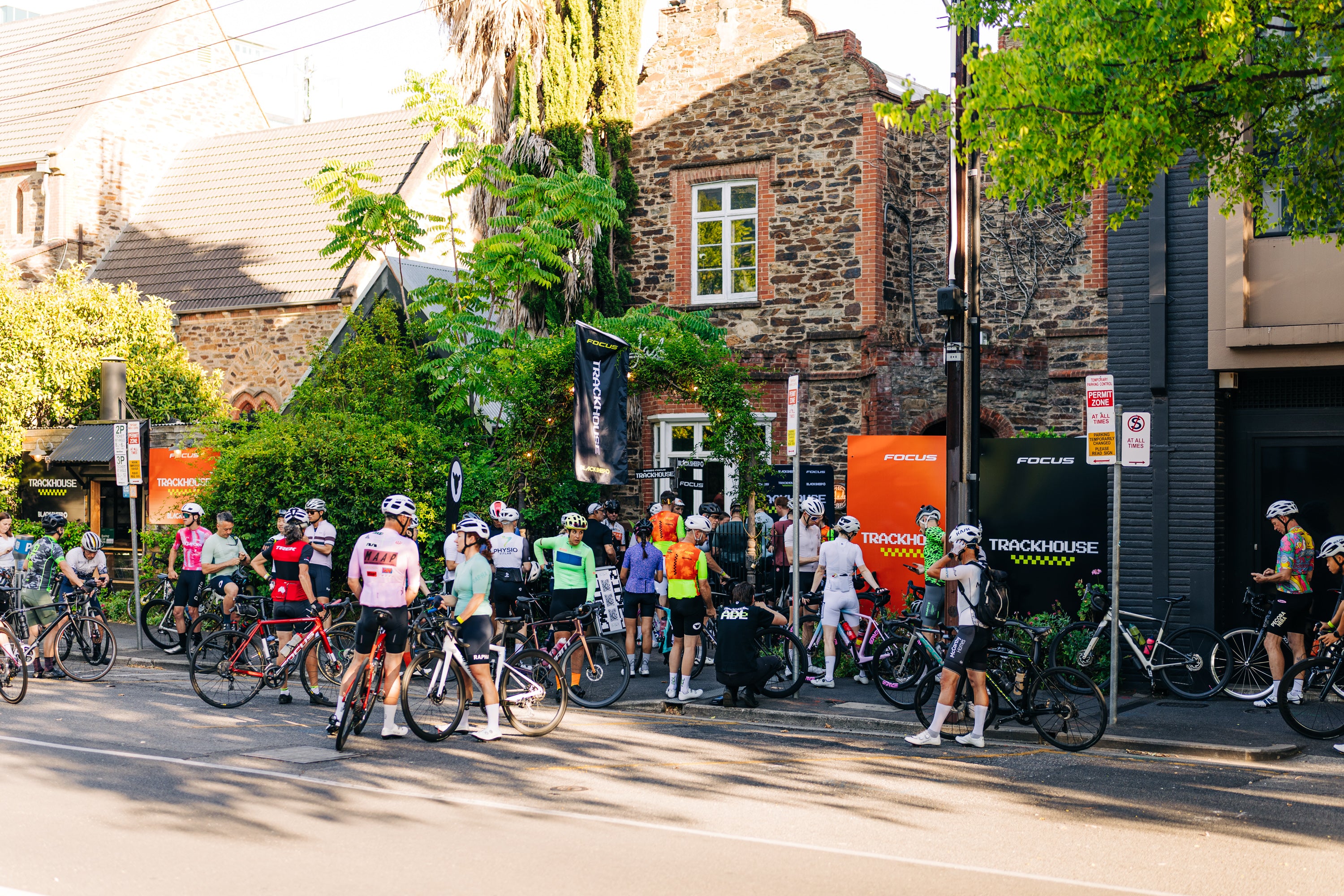 Housed in a heritage-listed building, the Trackhouse feels warm, familiar, and a little bit intriguing. There’s no light show or booming EDM. We’ll leave that to the cult down the road. Instead, you’ll find friendly faces, a recovery lounge with the racing on full display on the big screen, genuinely great coffee, and a beer garden for when it’s time to unwind or send it. Whatever’s on your bingo card.
