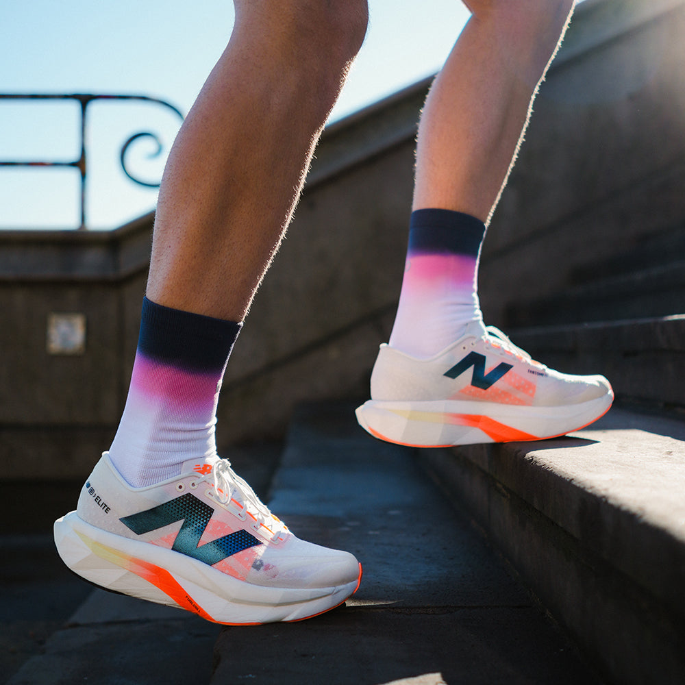Introducing the SHYU x Black Sheep Half Crew Racing Sock. This sock delivers race-day performance with a visual punch. Designed to match the limited edition SHYU x Black Sheep Fly Singlet. This custom colourway mirrors the same tonal transitions as the Fly Singlet. Bold, bright, and built to move.